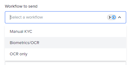 From this modal, select either Biometrics/OCR or OCR only from the Workflow to send drop-down menu.