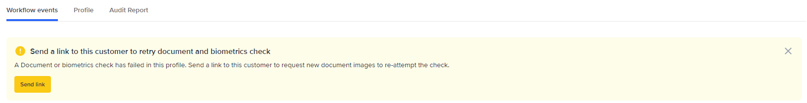 When an entity has either failed a document or biometrics check, the system recommends you send a link again.