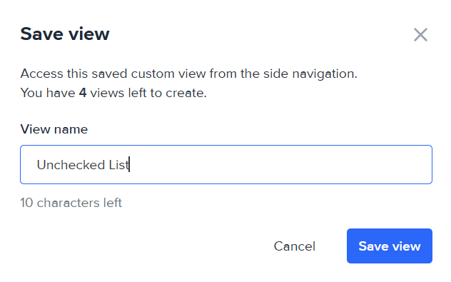 Enter the name of the custom view. Please note that there is a 24-character limit to the names.