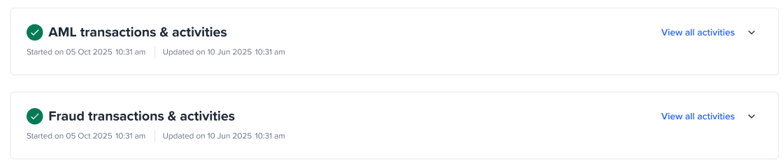 ACTIVITY_AML- a step dedicated to performing AML checks on the activity.ACTIVITY_FRAUD- a step dedicated to performing fraud checks on the activity.