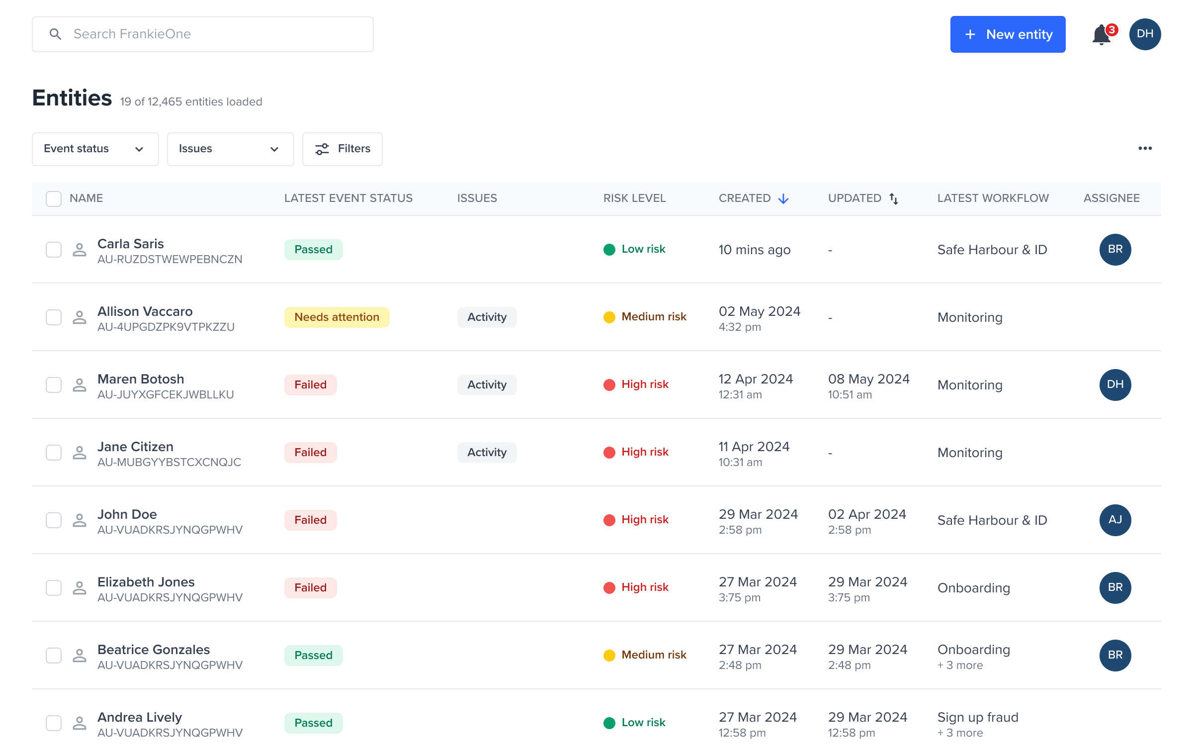 - All risks, rules checked and additional evaluation data are returned to FrankieOne.