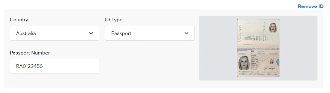 To remove an ID document, hover on its row and select Remove ID.To update the uploaded document, hover on its preview image and select either View to see a larger version of the uploaded document, or Replace to browse and select the replacement document.