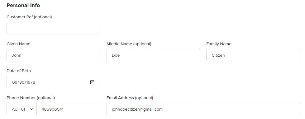 Additional data entry fields will be displayed depending on the ID type. The following screenshot shows the detail fields for an Australian Driver Licence (Victoria).