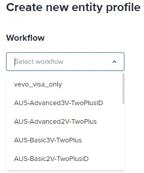 Select the workflow to run on the entity. The workflow will be used to perform the manual KYC verification.