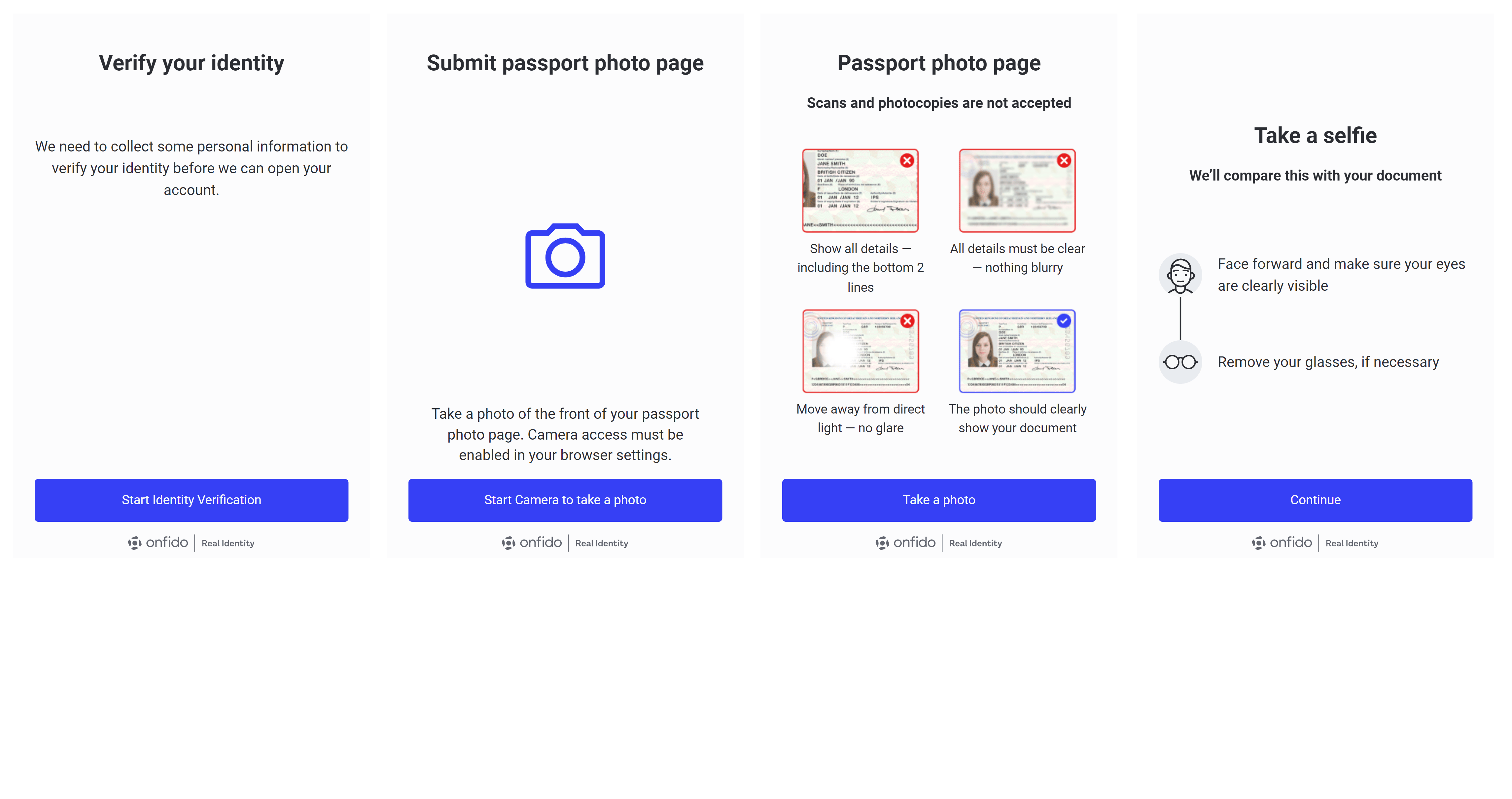 IdScanVerification is defined, we use the Onfido Web SDK to execute the document scan and selfie captures, and use it when assessing the user’s check status.