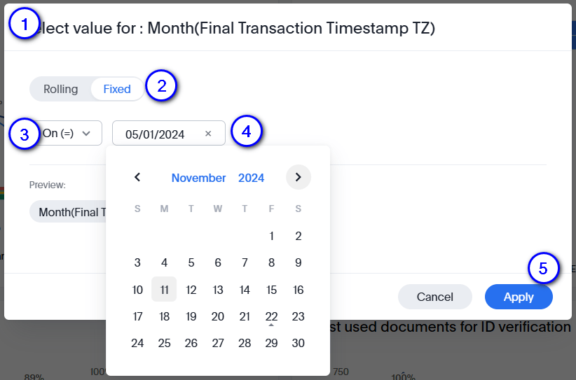 You want to display the data for a specific date, such as 11-Nov-2024. To do so:- Open the Select value modal.