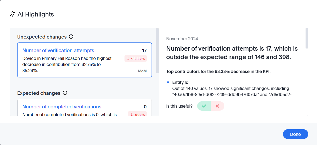 Select the AI Highlights to use our advanced AI capabilities to generate highlights from the data presented.