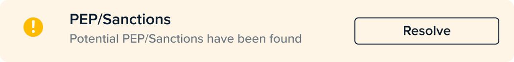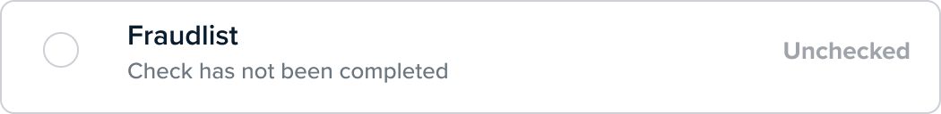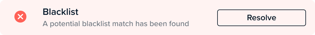 The customer has failed this check. If a user action is required in order to manually pass this customer, this action will be shown as a button on the check. Depending on the type of check, if a check fails, the rest of the checks won’t run until the failed check has been resolved.