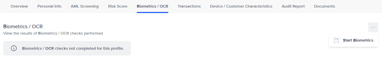 In the Biometrics/OCR tab in the top right click on the three dots to bring up the menu with “Start Biometrics”.