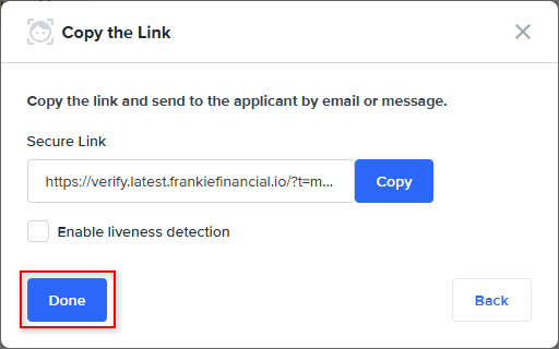 - If you would like “liveness” (video of an individual versus a photo) check the liveness checkbox, otherwise selfie photo will be used instead.