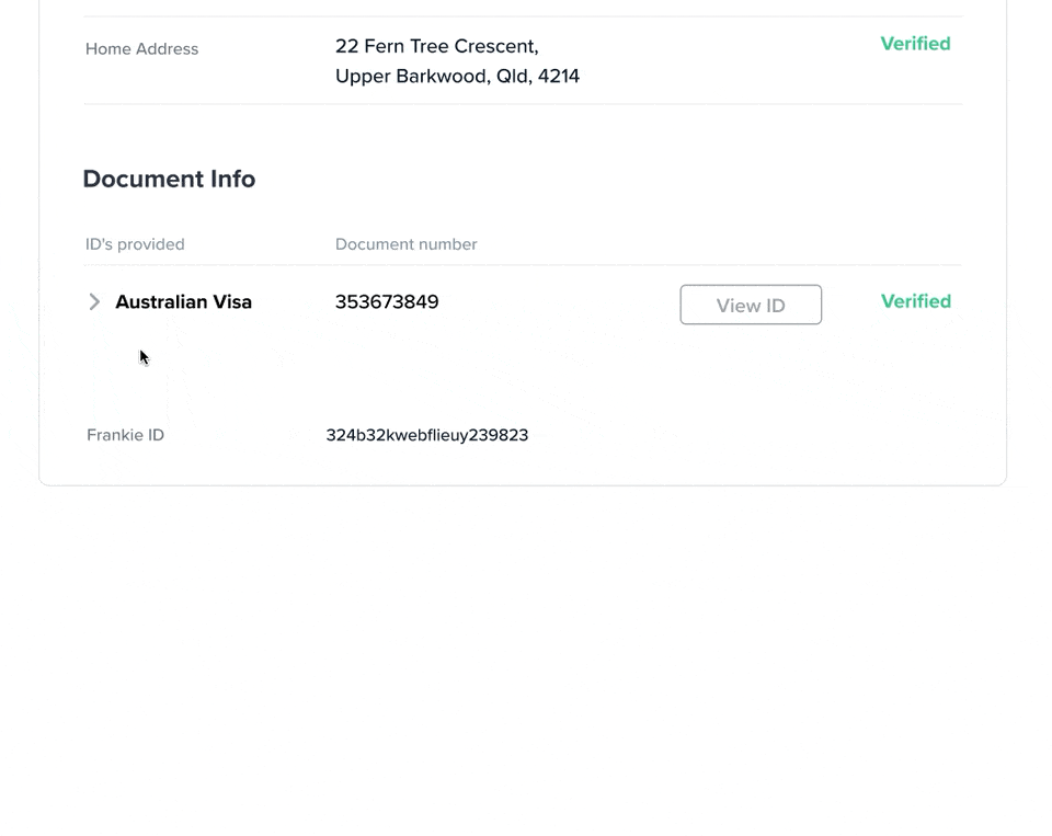 A VEVO check can be configured as part of any entity profile, and if verified, also counts as one Australian GOV ID when run with the DVS Visa check. The check summary will tell you if a VEVO check has been run and if it was verified or not. Speak to your account manager for pricing and further information on running VEVO checks.Check Passed