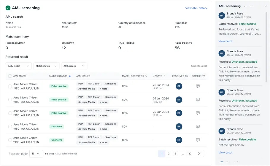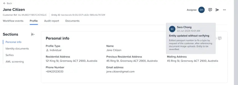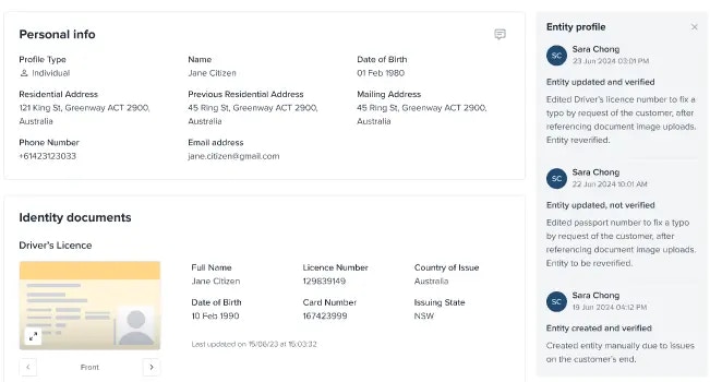 The expanded comments view would show the comments related to Entity updates (which relates to KYC database checks) such as adding documents, correcting names, etc.