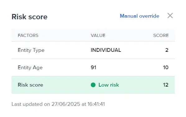 Click Risk score to view the numeric score and the factors that changed it. Scores update every time a workflow finishes.