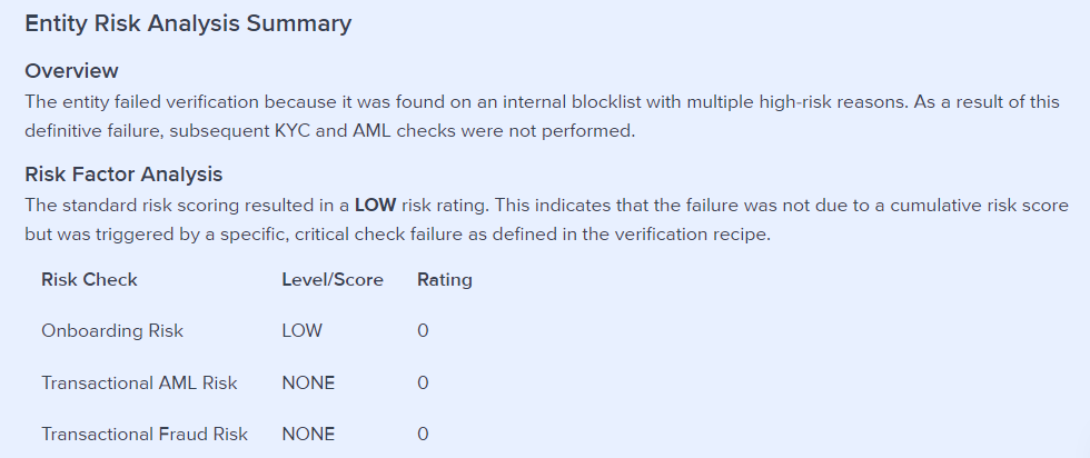 Reasons for Failure: Detailed explanations of specific audit events that led to the entity being flagged.