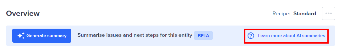 To see the generated summary, select the βAI Summary generated for this entityβ row. It will expand and display the summary.