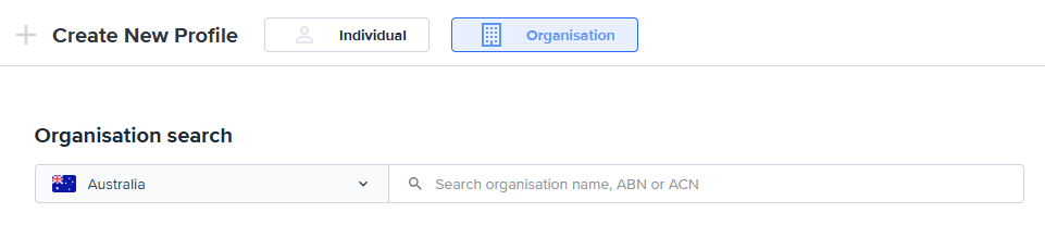 This will Search the ABR (Australian Business Register) and display options in the dropdown.
