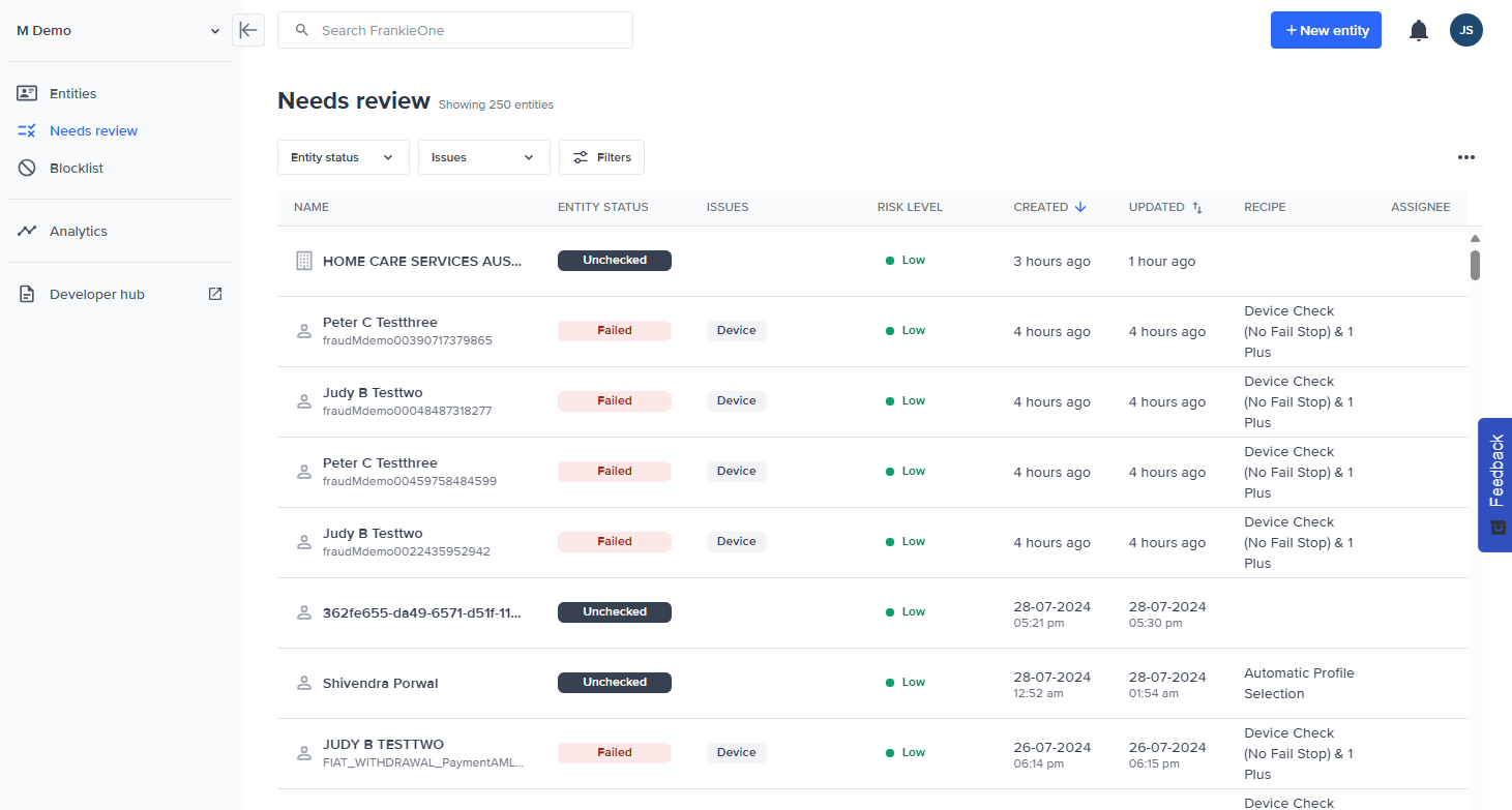 The Needs review list contains all profiles that require manual review.