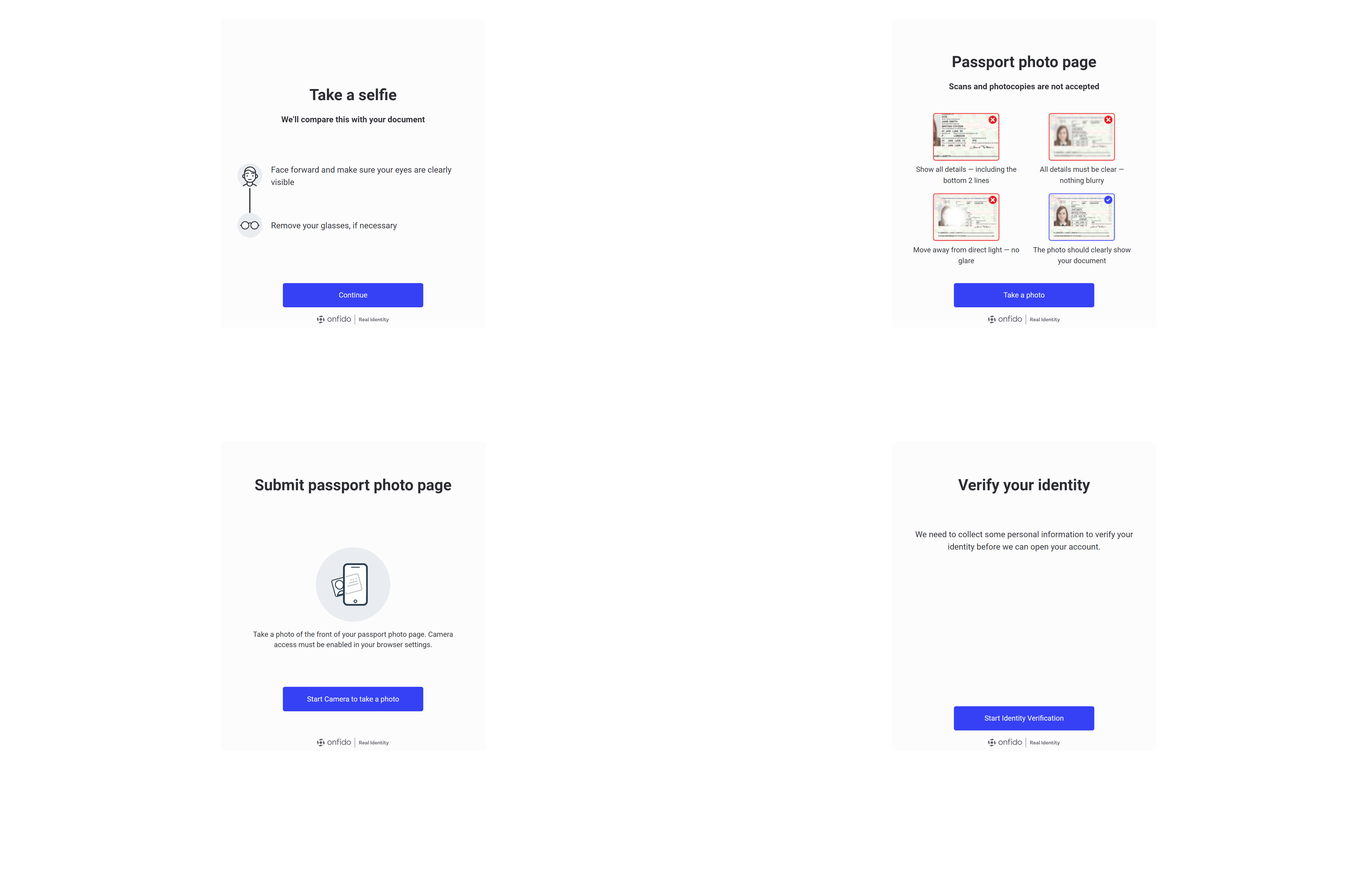 When IdScanVerification is defined, we use the Onfido Web SDK to execute the document scan and selfie captures, and use it when assessing the user’s check status.