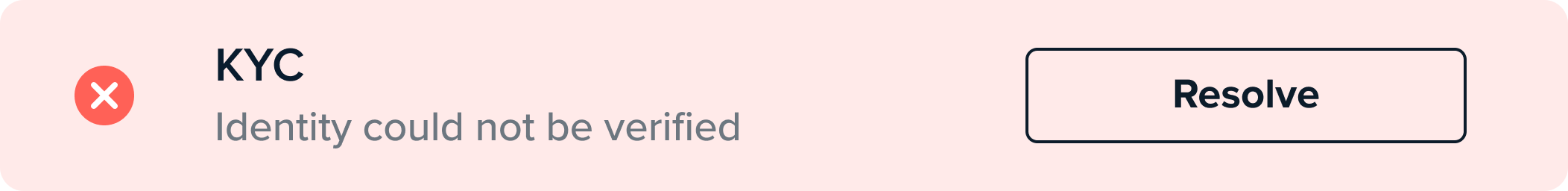 Where any of the checks haven’t met the minimum rule requirements, clicking the Resolve button in the check summary will direct you to the KYC/Personal Info tab.
