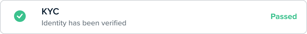The customer has failed this check. If a user action is required in order to manually pass this customer, this action will be shown as a button on the check. Depending on the type of check, if a check fails, the rest of the checks won’t run until the failed check has been resolved.