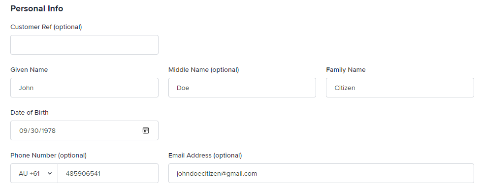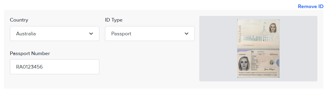 Additional data entry fields will be displayed depending on the ID type. The following screenshot shows the detail fields for an Australian Driver Licence (Victoria).